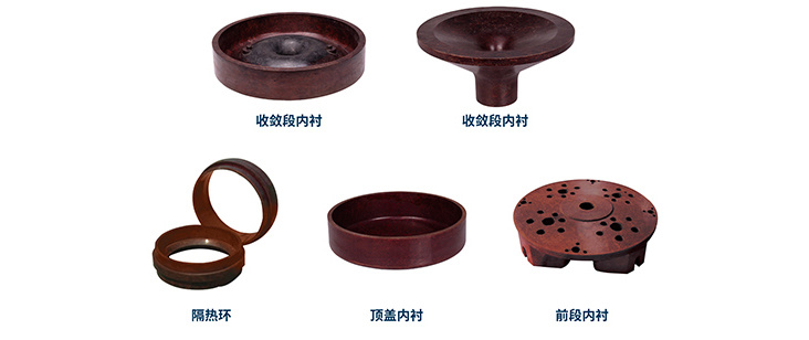 該類產(chǎn)品組件具有良好的耐燒蝕與隔熱性,耐高速燃氣沖刷,可在3000°C、燃氣速度2000m/s沖刷條件下工作 6s 以上。